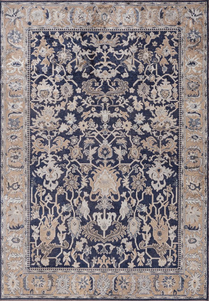 Fluxie Beige & Blue Persian Living Room Rug