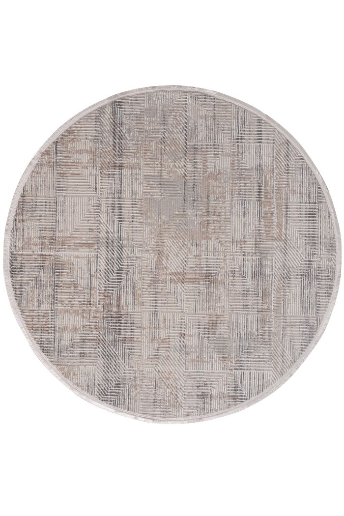 The Leto Cream Distressed Trellis Round Rug offers a unique circular design that enhances the aesthetic of any room. Featuring a blend of trellis and geometric patterns with a distressed finish in Cream, Beige, Copper, and Grey tones, this Polypropylene and Polyester rug adds a modern touch to your living space. Its round shape and durable construction make it a stylish and versatile addition to your decor.