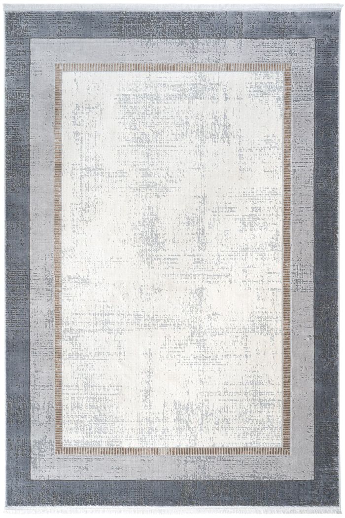 Verbina Grey Cream Bordered Bedroom Rug